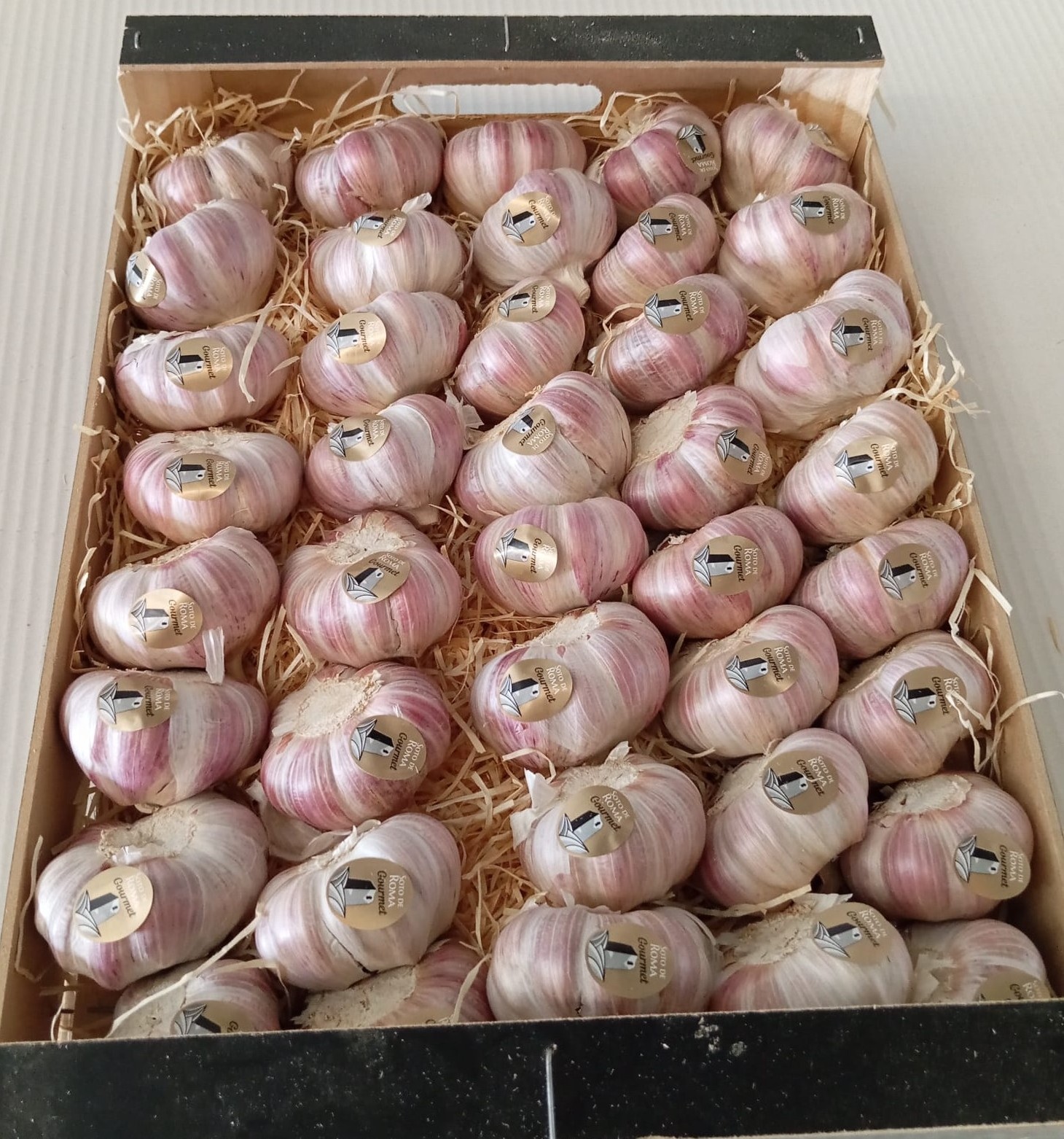 Ajo morado premium cuidadosamente seleccionado, reconocido por su sabor intenso, aroma característico y excelente conservación. Procedente de cultivos de alta calidad, este producto está especialmente orientado al canal profesional Horeca, tiendas especializadas y distribuidores que buscan un ajo de gran calibre, homogéneo y con alto rendimiento culinario.